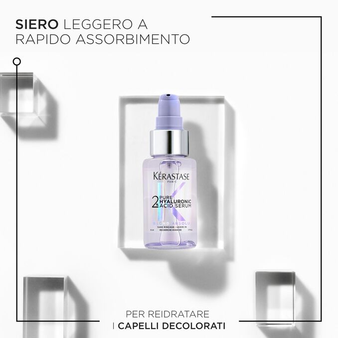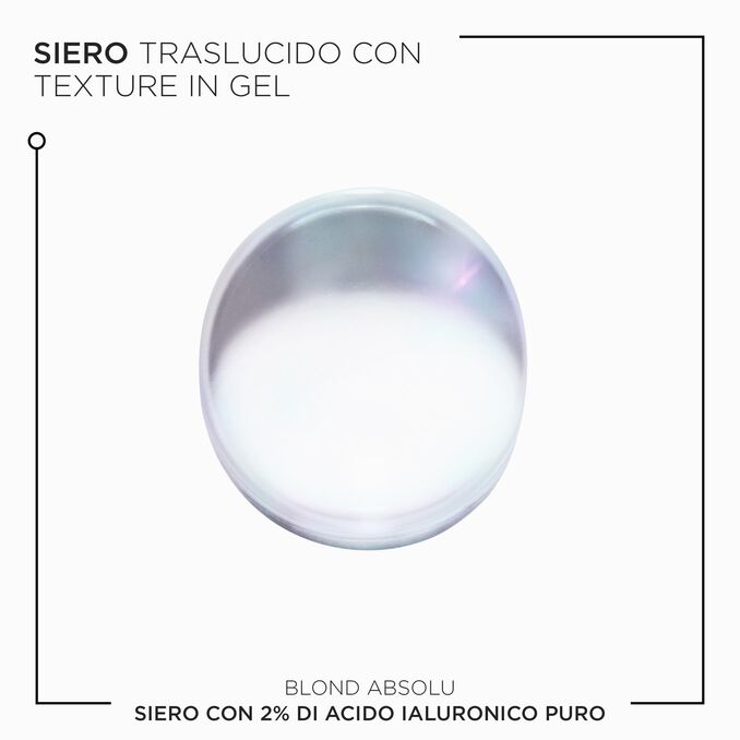 Siero idratante per capelli e cuoio capelluto. Il nuovo Siero con 2% di Acido Ialuronico della gamma Blond Absolu di Kérastase è un siero idratante e riparatore per i capelli biondi e per il cuoio capelluto. È pensato per i capelli biondi decolorati in quanto contiene la nostra massima concentrazione di acido ialuronico, macro e micro, con l'obiettivo di riparare i danni superficiali dei capelli e idratare sia il cuoio capelluto che i capelli.